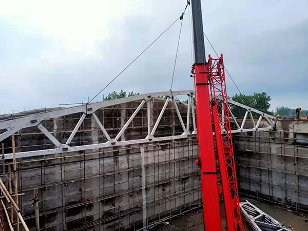5月23日下午,二分公司安徽阜南粮食仓储项目5#平房仓最后一块屋面板顺利吊装就位,至此,项目首座平房仓提前3天主体完工,达到储粮条件。
